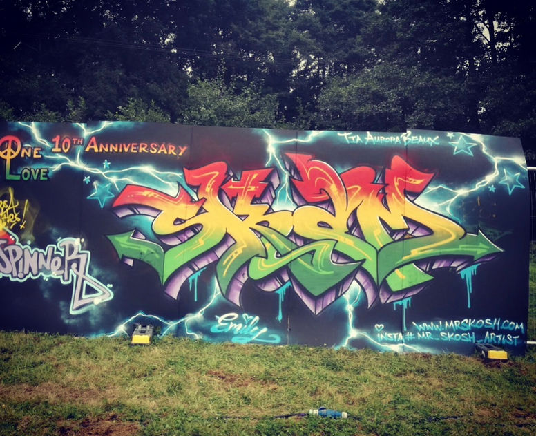 We’re One Love Graffiti Crew a loose collective of underground writers, mural heads and lifelong music lovers who’ve been part of the One Love landscape for over a decade. If you’ve walked the site in years gone by and suddenly caught a burst of colour that made you stop, smile, take a photo, or just look twice… that’s the energy we live for.